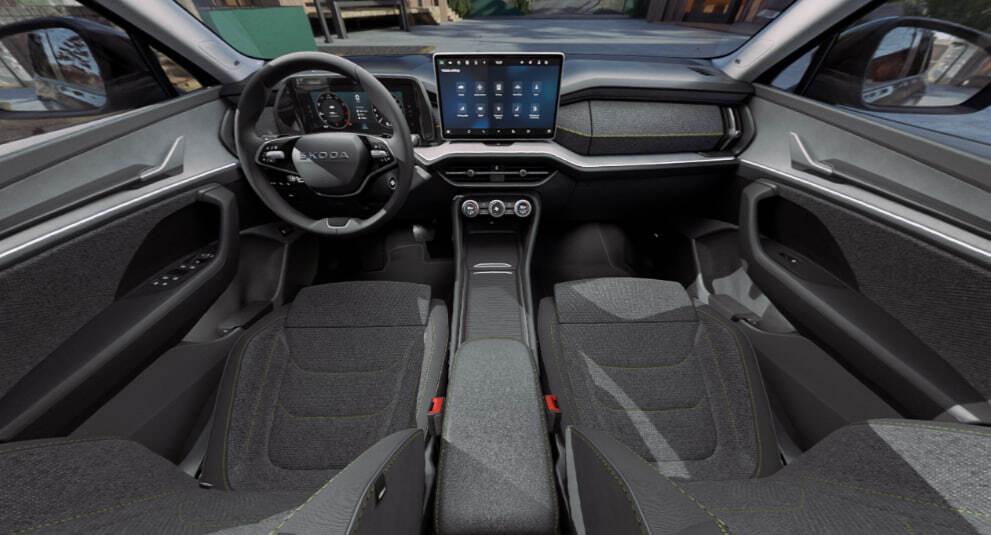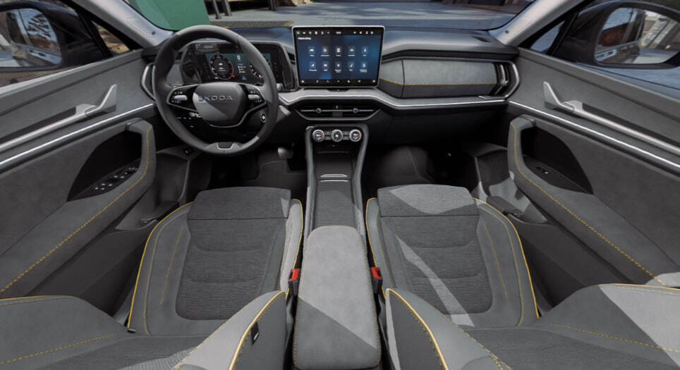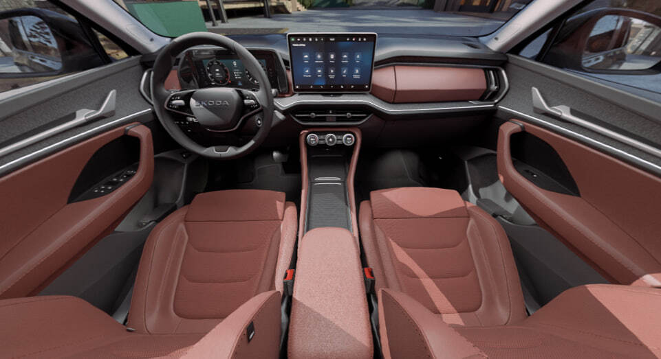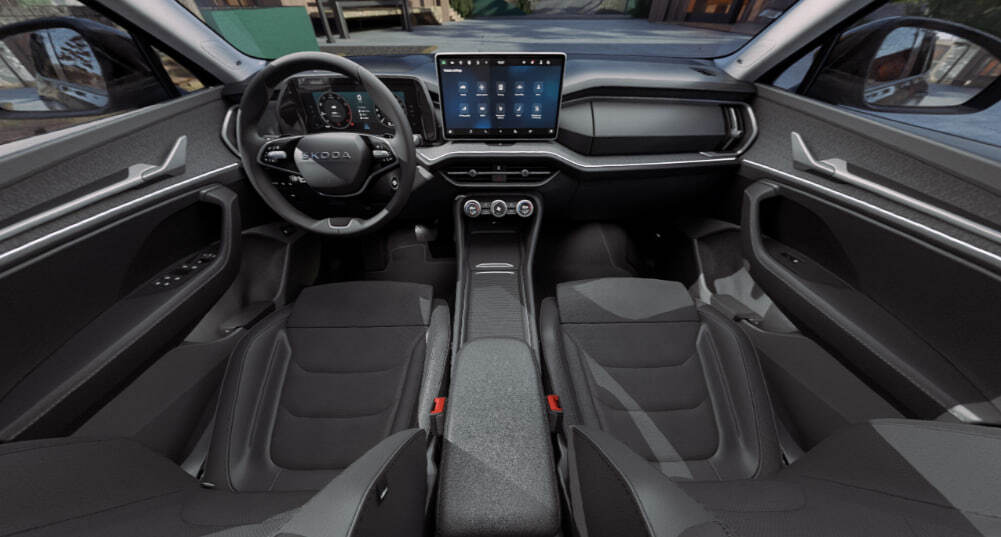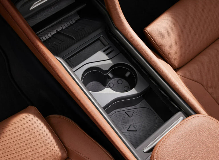 Салон новой модели может быть как пятиместным, так и семиместным (за доплату) — с тремя рядами сидений. Над организацией третьего ряда в Skoda, очевидно, потрудились недостаточно: там имеются ремни безопасности, но явно не хватает пространства для ног, да и попасть туда сумеет далеко не каждый — людям плотной комплекции уж точно придется остаться на первом или втором ряду. Если эта опция необходима, то только разве что для перевозки детей. Для удобства задних пассажиров предусмотрено несколько «умных» решений: штатный держатель для планшетов и откидные столики, размещенные на спинках передних сидений, а также розетка на 12 Вольт, гнездо прикуривателя и USB-разъем для зарядки мобильных устройств. Кроме того, есть штатные зонтики в дверях и даже скребок для льда под крышечкой топливного бака. комфорт_1
