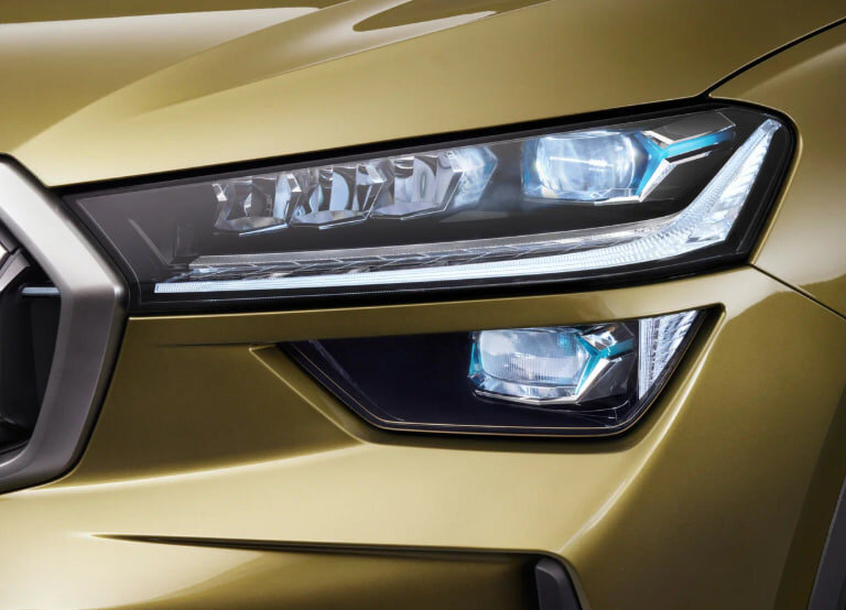 дизайн_2 При создании новинки дизайнеры марки учитывали и чешские традиции. Благодаря их усилиям оптика кроссовера по своей форме и структуре напоминает популярные в Чехии изделия из хрусталя. В базовой комплектации головная оптика галогенная, а светодиодная предлагается за доплату. Сзади Kodiaq — Skoda как Skoda, правда, более современная. Крышка багажника, как и у других «чехов», огромная, а скрытый за ней объем грузового пространства впечатляет — свыше 600 л. как минимум (объем различается, в зависимости от количества кресел).