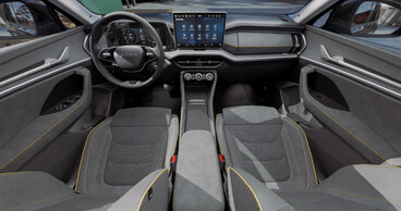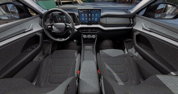комфорт_2 Место водителя легко подгоняется «под себя» за счет рулевой колонки, которая регулируется по высоте и вылету. Трехспицевый кожаный мультируль может похвастаться кнопками управления аудиоаппаратурой и эргономическими наплывами, благодаря чему обеспечивается максимально удобный хват. Торпедо радует качественным мягким пластиком и читабельной приборной панелью, расположенной слева за рулем. «Приборка» с традиционной компоновкой — выполнена в виде двух аналоговых «колодцев» спидометра и тахометра с цветным информационным дисплеем в центре. В целом салон Kodiaq немного скучноватый, зато достаточно комфортабельный. Материалы отделки в основном добротные и приятные на ощупь, все нужное находится на своих местах и ни к чему долго привыкать не приходится. Автомобиль, проще говоря, не очень веселый, но предельно практичный и отлично подходит для всей семьи.