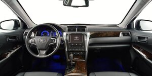 Салон Toyota Camry — настоящий островок комфорта. Там и приборная панель с многофункциональным цветным экраном, и удобные сидения с функцией подогрева, и индивидуальные лампы для чтения… Чего там только нет! Места при этом с лихвой хватает для 3-5 человек, за что стоит сказать спасибо габаритам автомобиля. В длину авто достигает 4,85 м, в ширину — 1,825 м, в высоту — 1,48 м, а расстояние между осями колес составляет 2,775 м. Клиренс — 16 см, и его достаточно, чтобы чувствовать себя уверенно.