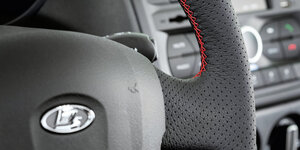 • Отделка руля, чехла КПП кожей с красной отстрочкой